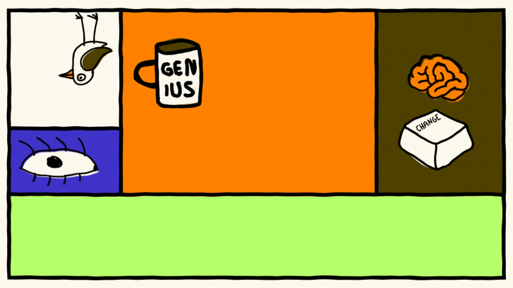 Doodles and squiggles. Hasty and infantile cherry on top of a birthday cake. That’s one way to describe the illustrations that were cast as the lead in this new visual concept of ours. With their crooked appearance and colors leaking through the edges, they seem as if they were scribbled on the margins of a textbook or carved into the desk in a math class. What makes the difference here, however, is that they are animated in a subtle but jittery way to make them more dynamic.