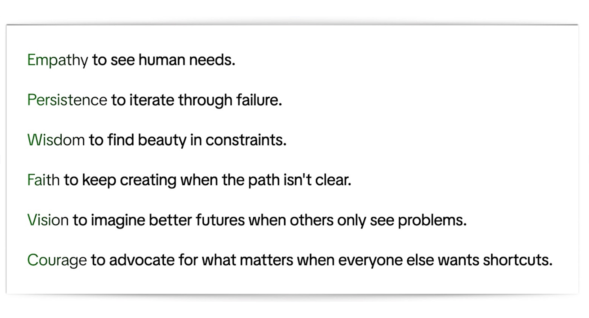 These aren’t traditional design skills, but they build directly on design foundations. They represent the evolution from creating individual products to shaping technological transformation.